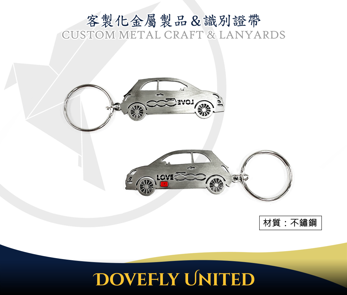 鑰匙圈採用厚實不鏽鋼板進行鏤空切割,堅固耐用不易生鏽,表面經過髮絲打磨處理,光滑平整,手感舒適。其中像是車窗、車燈、門把、輪圈、輪拱,還有Love 500字樣都是採用穿透鋼板的中空加工。除了汽車輪廓之外,透過精細切割技術,連後視鏡與方向盤的形狀都清晰製作,讓視覺增加豐富層次感,而不只是一個呆版的鑰匙圈。